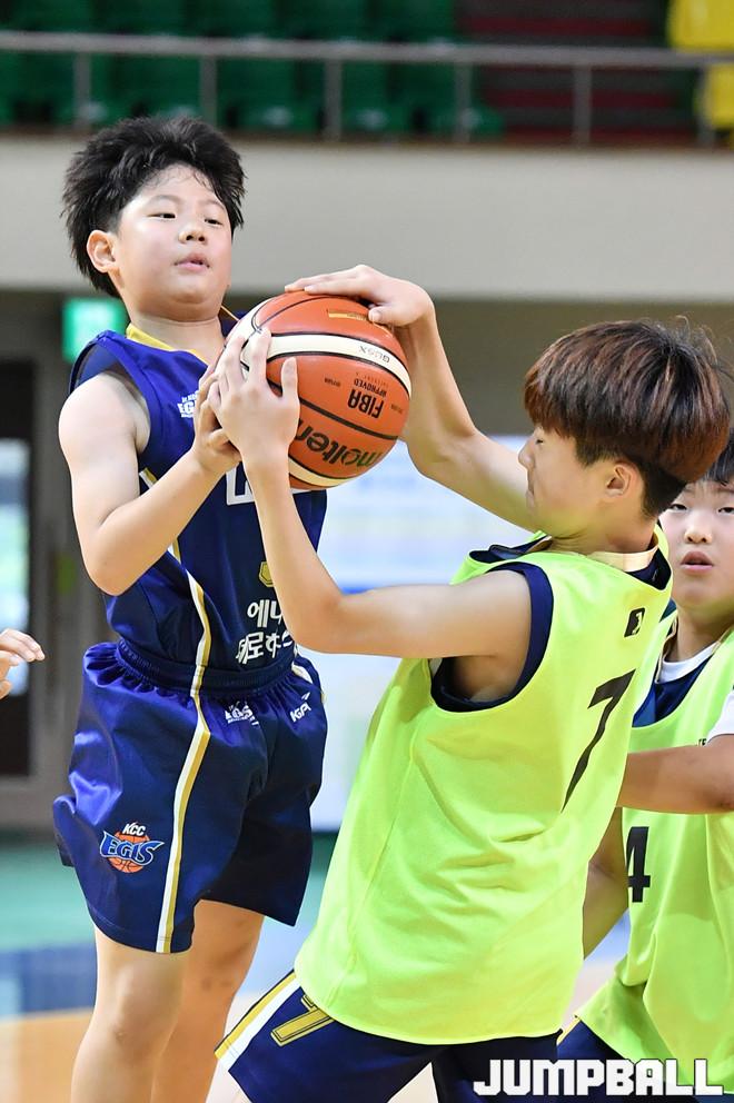[점프볼=군산/홍기웅 기자] 28일 군산월명체육관에서 열린 'KCC이지스배 유소년 페스티바 IN 군산' 전주 Jr.KCC와 군산 Jr.KCC의 경기. 군산 KCC와 전주 KCC가 루즈볼 다툼을 하고 있다.