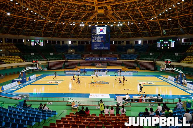 [점프볼=군산/홍기웅 기자] 28일 군산월명체육관에서 'KCC이지스배 유소년 페스티바 IN 군산'이 열렸다. 넓은 코트에서 유소년 클럽 선수들이 경기를 뛰고 있다.