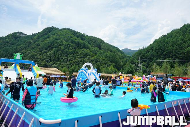 [점프볼=평창/홍기웅 기자] 3일 평창 대화면 평창더위사냥축제 특설코트에서 열린 '2019 KXO 3X3 리그 4라운드 평창'. 특설코트 맞은편에서 평창더위사냥축제가 열려 뜨거운 여름에 시원함을 더해주고 있다.