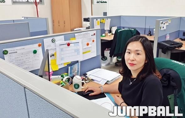 [점프볼=김용호 기자] 코트를 누비는 선수들만큼 그 곁에서 에너지를 뿜는 이들을 만난다. 32번째 코트사이드의 주인공은 농구팬들과 끊임없이 소통하며 한 연고지를 굳건하게 지키고 있는 사람이다. KBL 10개 구단이 모두 그렇지는 않지만, 몇몇 구단에는 각 연고지에 농구단 사무소가 존재하는 곳이 있다. 그리고 연고지 소통이라면 빠지지 않는 원주 DB가 그렇다. DB의 원주 사무소에는 15년에 가까운 시간 동안 같은 자리를 지키고 있는 이가 있다. DB 진수경 사원이 바로 그 주인공. 농구대잔치 시절부터 농구에 푹 빠졌던 여학생이 농구단의 일원이 되기까지. 어떤 일들이 있었는지 솔직담백한 이야기를 들어보자.