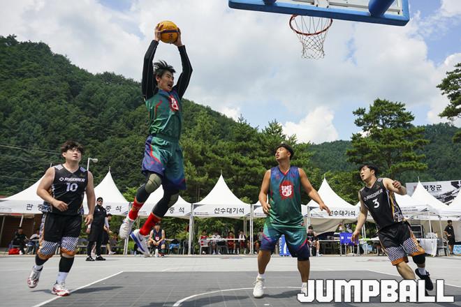 [점프볼=평창/홍기웅 기자] 4일 평창 대화면 평창더위사냥축제 특설코트에서 열린 '2019 KXO 4라운드 평창' 리그전 PHE와 리고러코리아의 경기. PHE 강우형이 리바운드를 잡아내고 있다.
