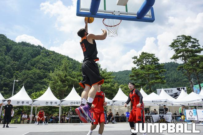 [점프볼=평창/홍기웅 기자] 4일 평창 대화면 평창더위사냥축제 특설코트에서 열린 '2019 KXO 4라운드 평창' 오픈부 4강 리고러코리아와 클린샷의 경기. 리고러코리아가 덩크를 시도하고 있다.