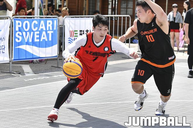[점프볼=평창/홍기웅 기자] 4일 평창 대화면 평창더위사냥축제 특설코트에서 열린 '2019 KXO 4라운드 평창' 오픈부 4강 리고러코리아와 클린샷의 경기. 클린샷이 드리블 돌파를 시도하고 있다.