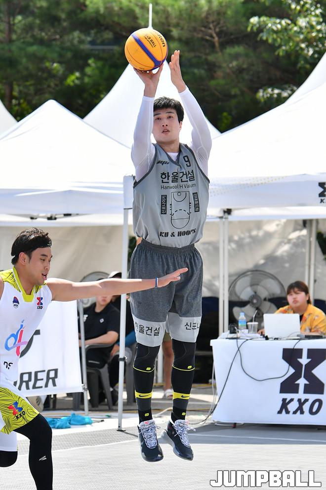 [점프볼=평창/홍기웅 기자] 4일 평창 대화면 평창더위사냥축제 특설코트에서 열린 '2019 KXO 4라운드 평창' 리그부 4강 한울건설&쿠앤HOOPS와 DSB의 경기. 한울건설&쿠앤HOOPS 방성윤이 2점슛을 시도하고 있다.