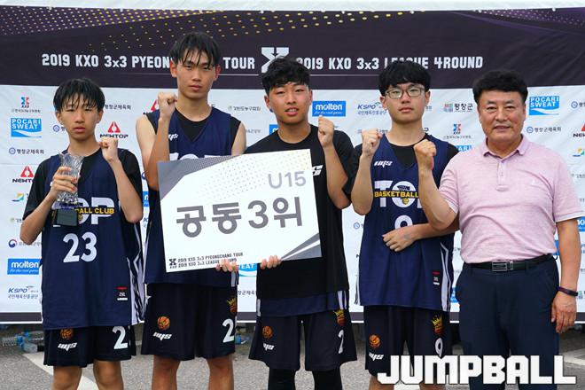 [점프볼=평창/홍기웅 기자] 4일 평창 대화면 평창더위사냥축제 특설코트에서 열린 '2019 KXO 4라운드 평창'. U15 공동 3위로 안산TOP가 수상했다.
