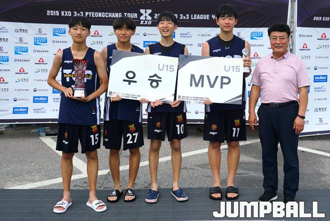 [점프볼=평창/홍기웅 기자] 4일 평창 대화면 평창더위사냥축제 특설코트에서 열린 '2019 KXO 4라운드 평창'. U15 우승으로 안산TOP B가 수상했다.