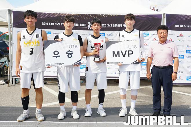 [점프볼=평창/홍기웅 기자] 4일 평창 대화면 평창더위사냥축제 특설코트에서 열린 '2019 KXO 4라운드 평창'. U18 우승으로 원주YKK A가 수상했다.