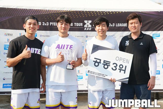 [점프볼=평창/홍기웅 기자] 4일 평창 대화면 평창더위사냥축제 특설코트에서 열린 '2019 KXO 4라운드 평창'. 오픈부 공동3위로 아잇스포츠가 수상했다.