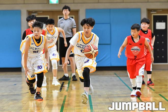 [점프볼=문경/홍기웅 기자] 15일 문경실내체육관에서 열린 '2019 KBL 유소년클럽농구대회 IN 문경' 고학년 A조 삼성과 현대모비스의 경기. 초등부 고학년 삼성 안민준이 드리블로 공격을 시작하고 있다.