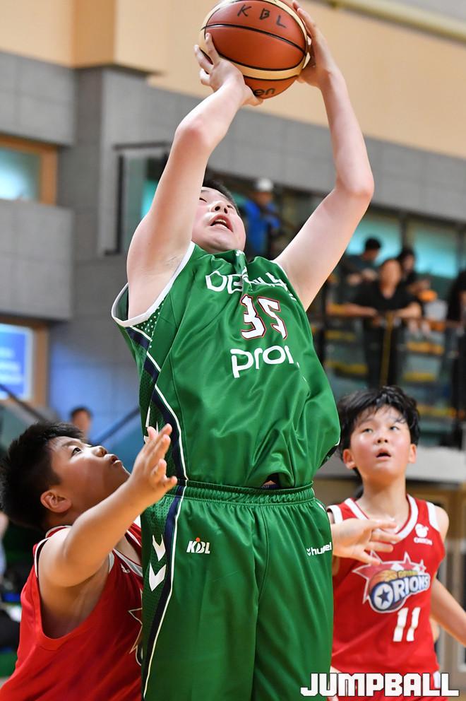 [점프볼=문경/홍기웅 기자] 15일 문경실내체육관에서 열린 '2019 KBL 유소년클럽농구대회 IN 문경' 고학년 B조 오리온과 DB의 경기. 초등부 고학년 DB 박준성이 골밑슛을 시도하고 있다.