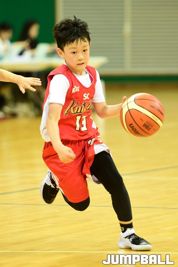 [점프볼=문경/박상혁 기자] 15일 국군체육부대 선승관에서 열린 '2019 KBL 유소년클럽 농구대회" 초등부 저학년 SK와 삼성의 경기, SK 이서현이 돌파를 시도하고 있다.