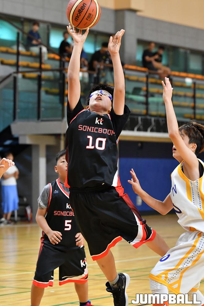 [점프볼=문경/홍기웅 기자] 16일 문경실내체육관에서 열린 '2019 KBL 유소년클럽농구대회 IN 문경' 고학년 A조 KT와 삼성의 경기. 초등부 고학년 KT 정새영이 골밑슛을 시도하고 있다.