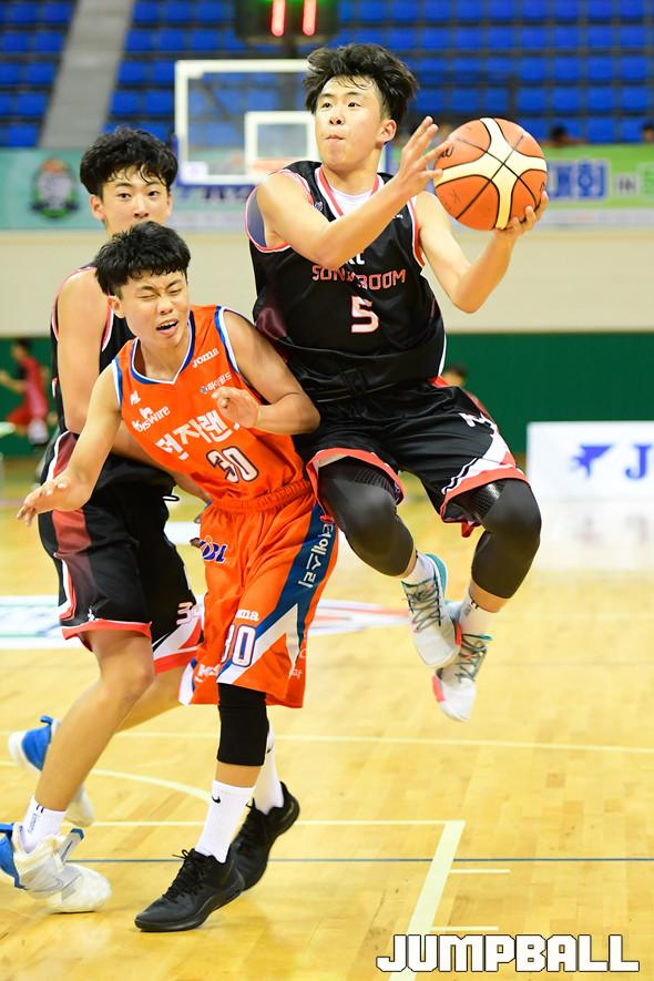 [점프볼=문경/박상혁 기자] 16일 국군체육부대 선승관에서 열린 '2019 KBL 유소년클럽 농구대회" 전자랜드와 KT의 중등부 B조 경기, KT가 전자랜드에 32대 23으로 승리하였다. KT와 전자랜드 경기 화보.