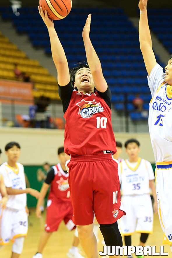 [점프볼=문경/박상혁 기자] 16일 국군체육부대 선승관에서 열린 '2019 KBL 유소년클럽 농구대회" 오리온과 삼성 중등부 경기, 오리온 염지훈이 슛을 시도하고 있다.
