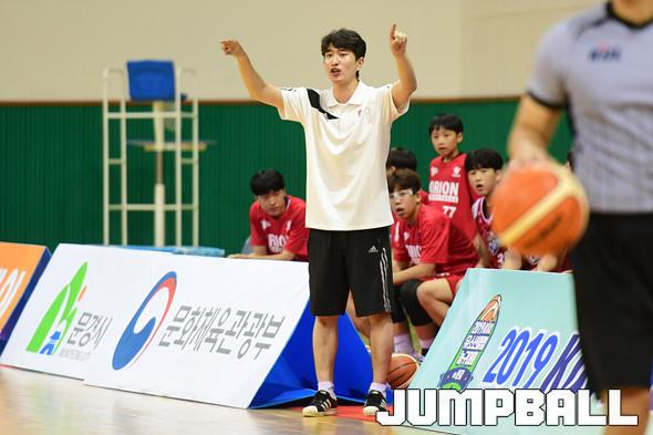 [점프볼=문경/박상혁 기자] 16일 국군체육부대 선승관에서 열린 '2019 KBL 유소년클럽 농구대회" 오리온과 삼성 중등부 B조 경기, 오리온 인호진 코치가 선수들에게 지시를 내리고 있다.