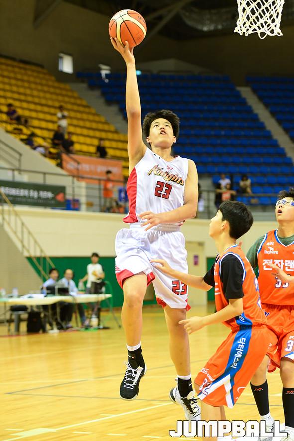 [점프볼=문경/박상혁 기자] 16일 국군체육부대 선승관에서 열린 '2019 KBL 유소년클럽 농구대회" 전자랜드와 SK의 중등부 B조 경기, SK 김성훈이 레이업 슛을 시도하고 있다.
