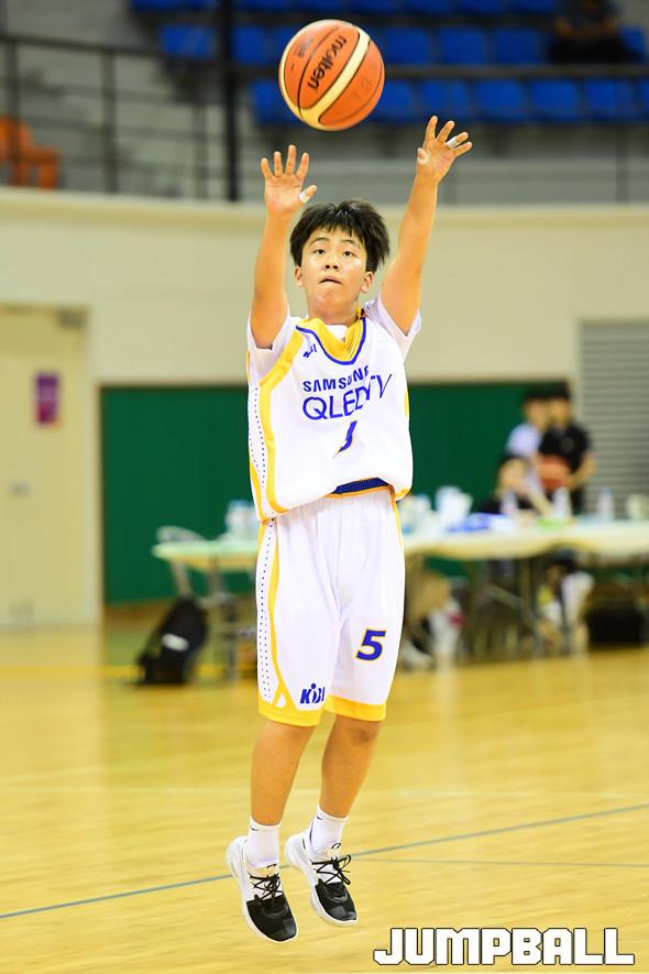 [점프볼=문경/박상혁 기자] 16일 국군체육부대 선승관에서 열린 '2019 KBL 유소년클럽 농구대회" SK와 삼성의 중등부 B조 경기, 삼성 강빈이 3점슛을 시도하고 있다.