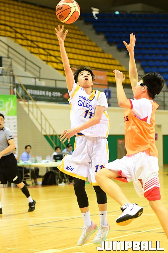 [점프볼=문경/박상혁 기자] 16일 국군체육부대 선승관에서 열린 '2019 KBL 유소년클럽 농구대회" SK와 삼성의 중등부 B조 경기, 삼성 함수완이 훅슛을 시도하고 있다.