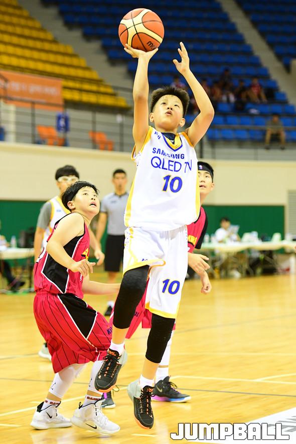 [점프볼=문경/박상혁 기자] 17일 경북 문경 국군체육부대 선승관에서 열린 '2019 KBL 유소년클럽 농구대회' 초등부 고학년 A조 LG와 삼성의 경기, 삼성 신지호가 슛을 시도하고 있다.