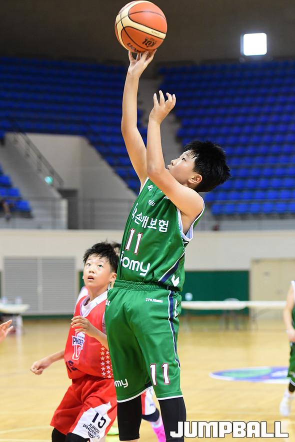 [점프볼=문경/박상혁 기자] 17일 경북 문경 국군체육부대 선승관에서 열린 '2019 KBL 유소년클럽 농구대회' 초등부 고학년 D조 DB와 모비스의 경기, DB 강현빈이 골밑슛을 시도하고 있다.