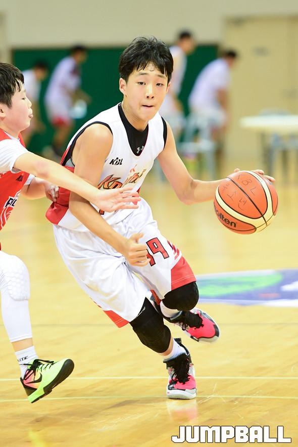 [점프볼=문경/박상혁 기자] 18일 경북 문경 국군체육부대 선승관에서 열린 '2019 KBL 유소년클럽 농구대회' SK(B)와 모비스(D)의 초등부 고학년 경기, SK 김태인이 돌파를 시도하고 있다.