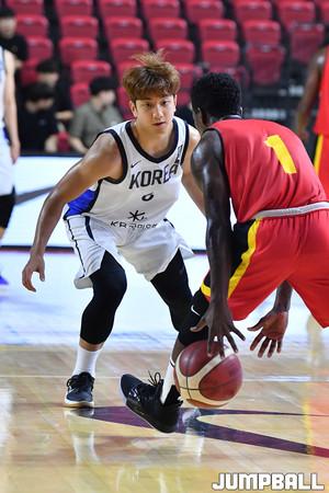 [점프볼=인천/홍기웅 기자] 27일 인천삼산월드체육관에서 열린 '현대모비스 초청 4개국 국제농구대회' 대한민국과 앙골라의 경기. 이승현이 득점후 주먹을 쥐며 백코트하고 있다.